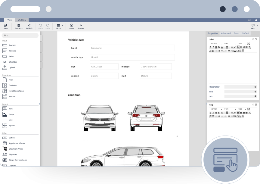 Realise your visions and create professional forms with the formcycle form designer. Our intuitive user interface, speed and unique functions set standards and convince where other manufacturers cannot keep up. Discover the power of formcycle and take your forms to the next level.
